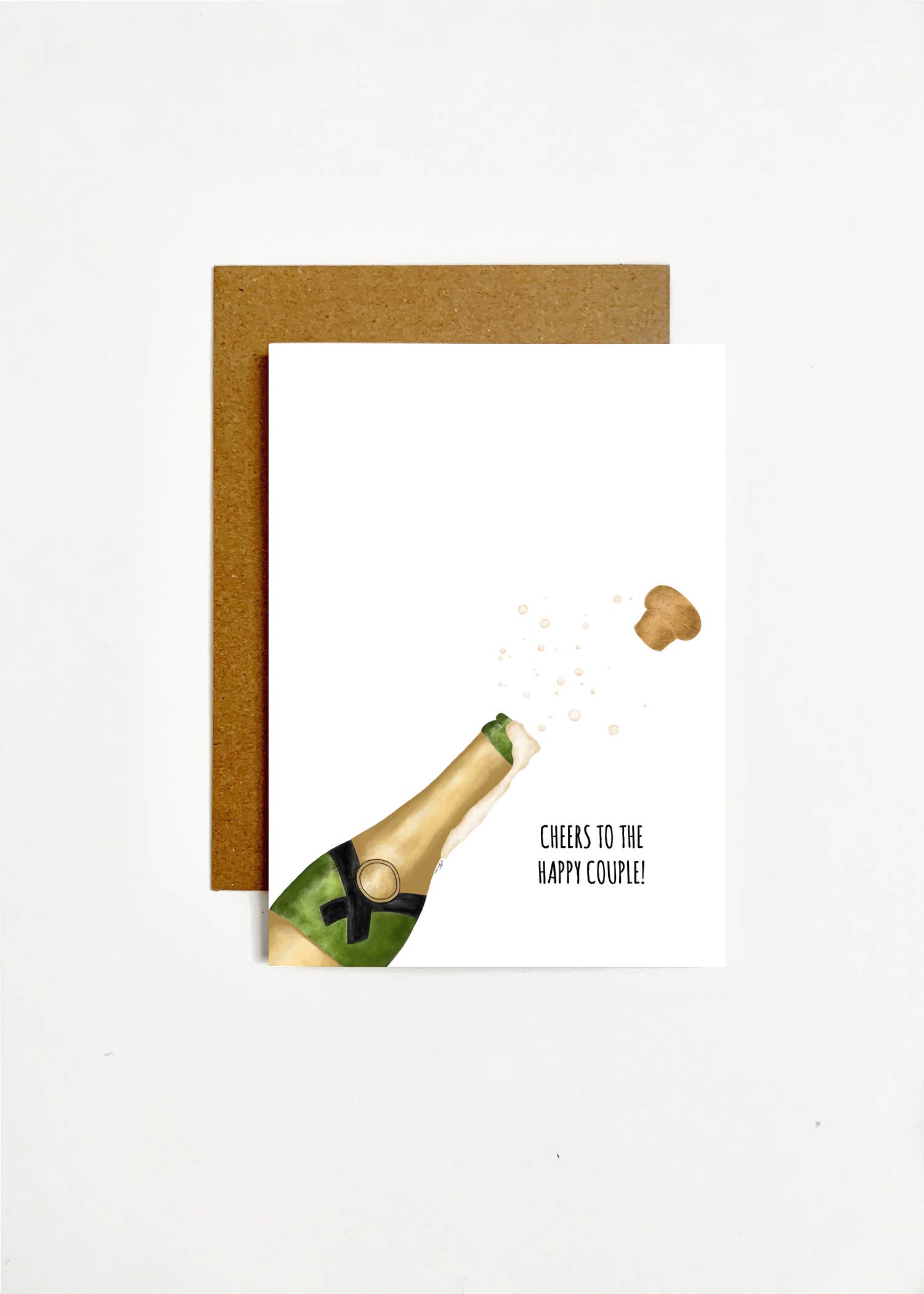 “Cheers To The Happy Couple!" This design is handmade digitally and then printed on #110 lb white card stock Comes with envelope Blank inside Made in the USA