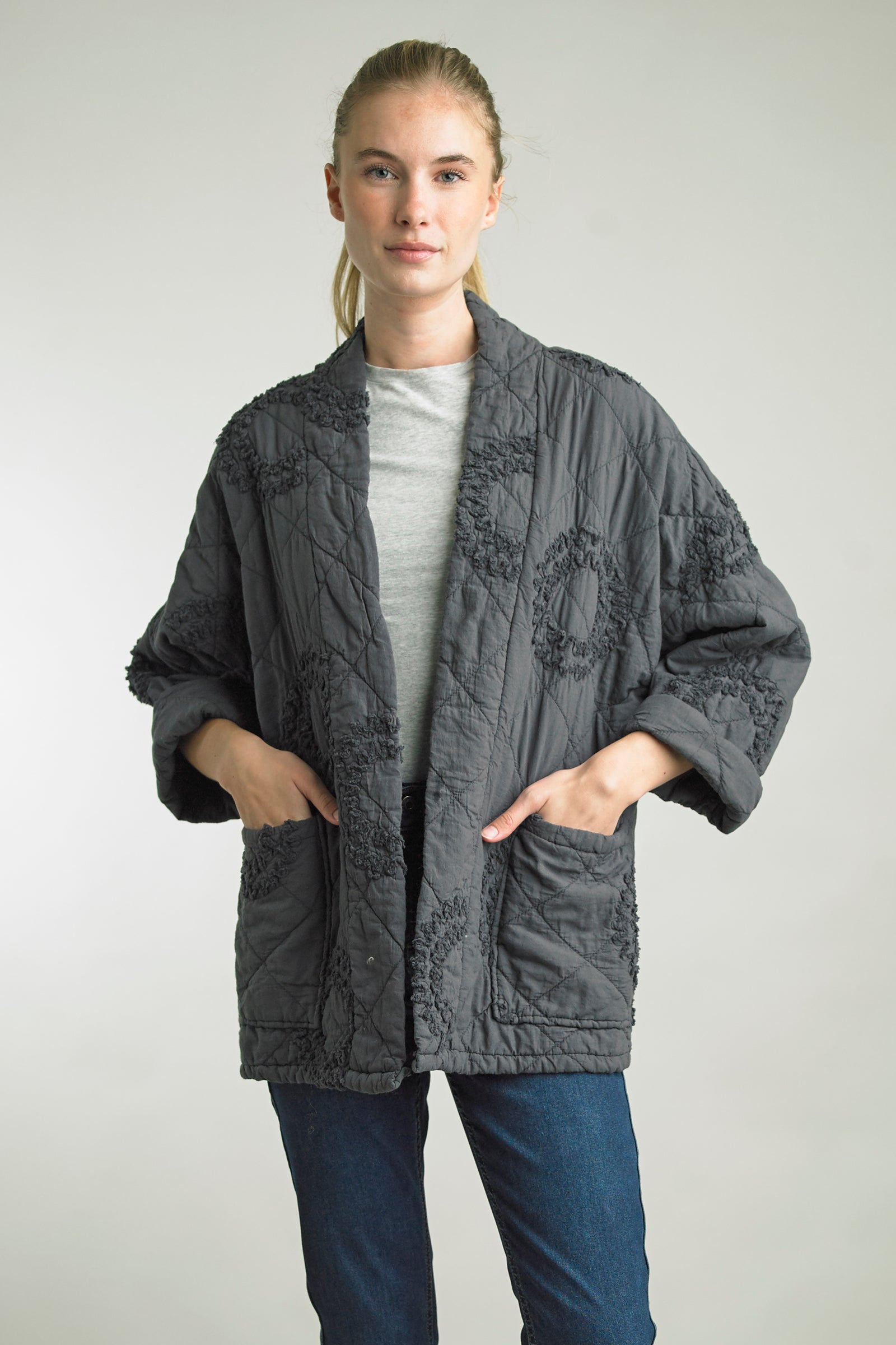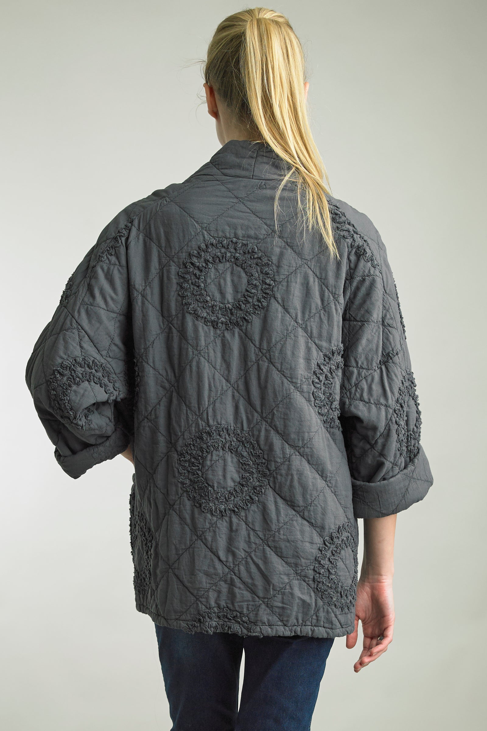 Quilted Jacket with Embroidered Embellishment in Gray