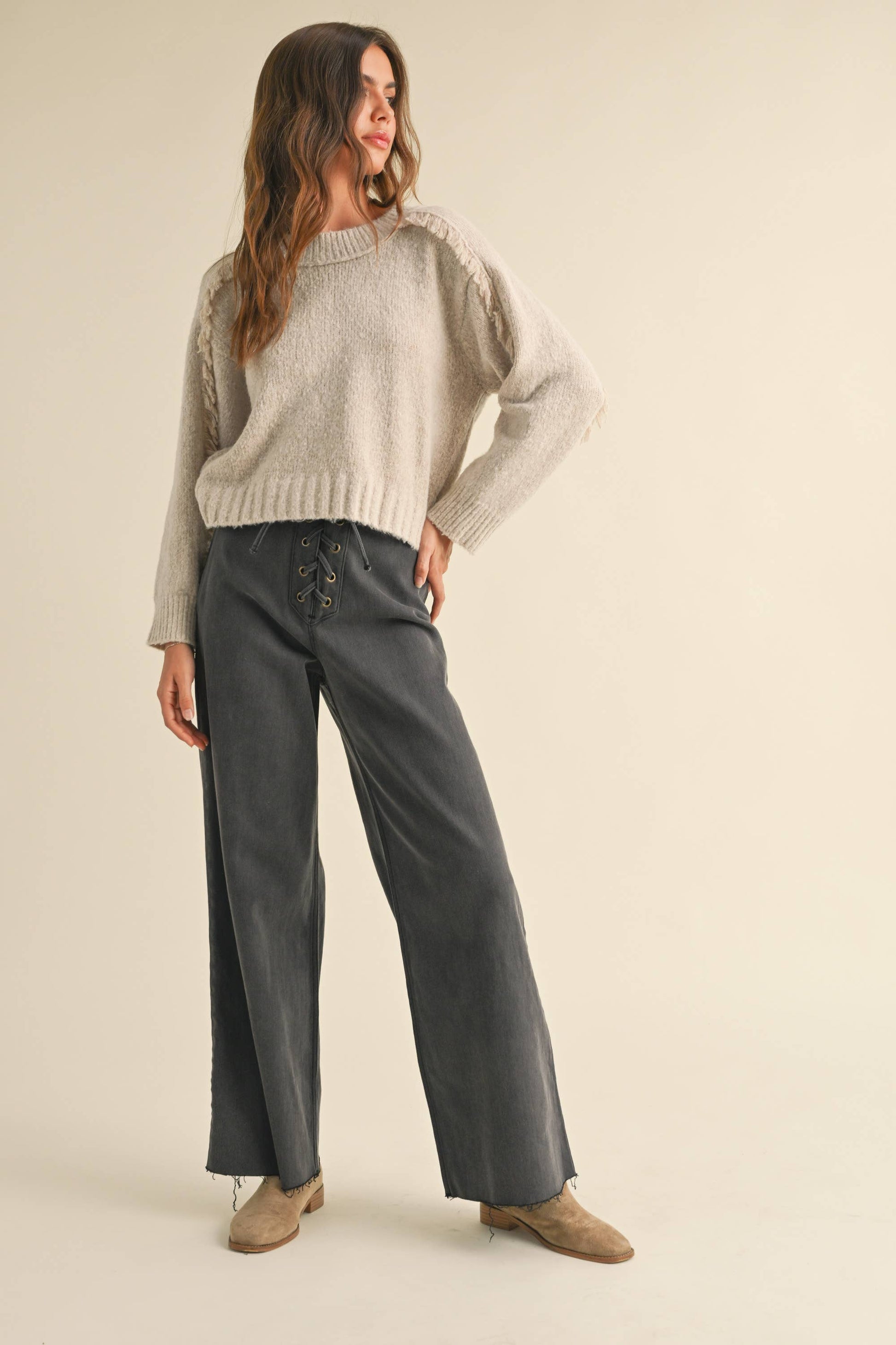 ~High waisted, Lace-Up Front, Wide Leg, with raw hem~