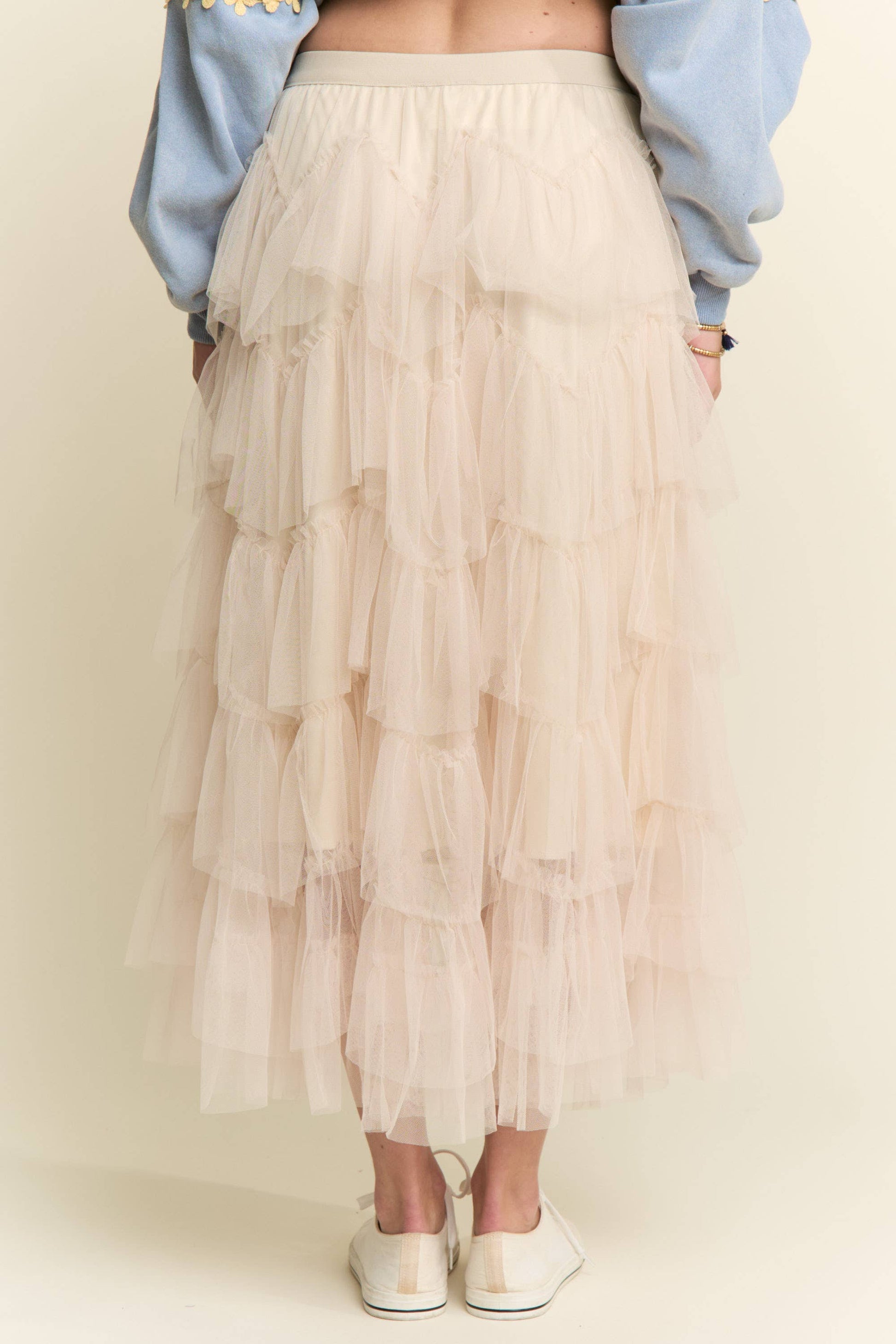 Tiered Ruffle Mesh Lined Maxi Skirt